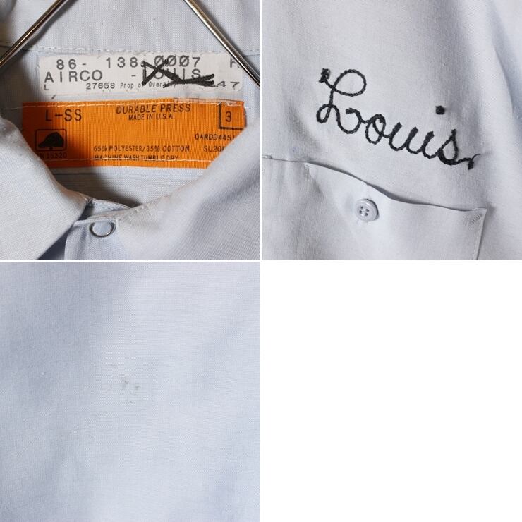 70s 80s USA製 RED KAP レッドキャップ チェーンステッチ ワーク シャツ ライトブルー メンズL 半袖 アメリカ古着です。