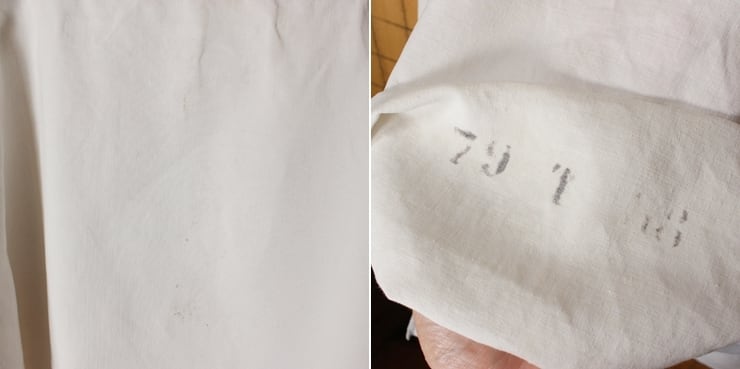 40s 50s フレンチ ミリタリー リネン セーラー シャツ ホワイト レディースM相当 メンズS相当 プルオーバー ステンシル 半袖 ヨーロッパ古着です。