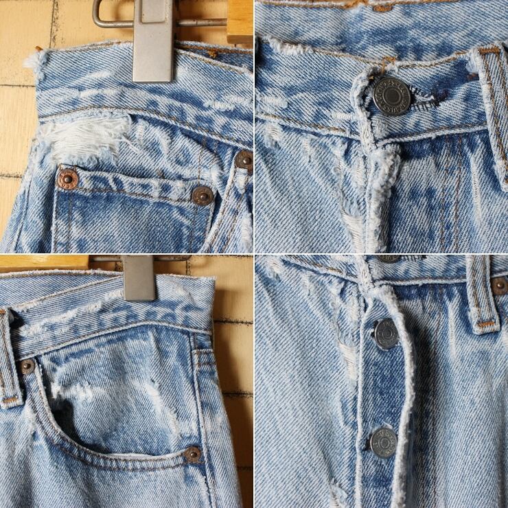 80s USA製 Levis リーバイス 501 ブルー ダメージ リメイク ジーンズ デニム パンツ W29 青 アメリカ古着です。