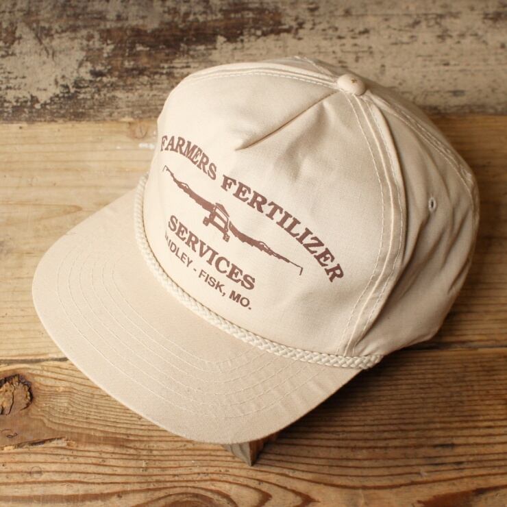 USA キャップ 帽子 FARMERS FERTILIZER SERVICES プリント ベージュ フリーサイズ アメリカ古着 090821aw147