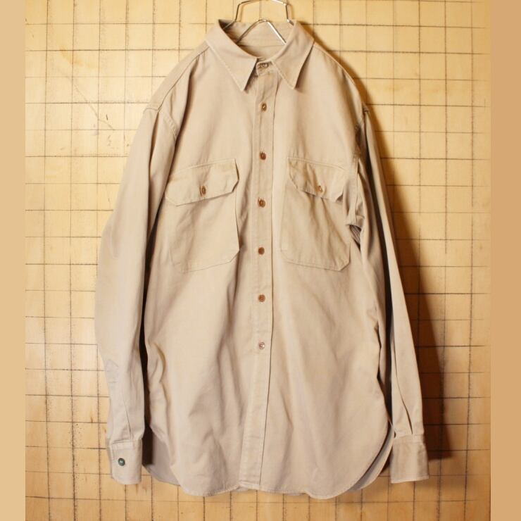 40s 50s USA製 米軍実品 U.S.ARMY 長袖 ミリタリー チノ シャツ マチ付き メンズL相当 アメリカ古着です。