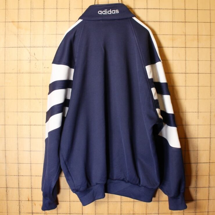 90s adidas アディダス ロゴ 刺繍 ジャージ トップ ネイビー ブルー メンズS ジップアップ 古着 090821aw37