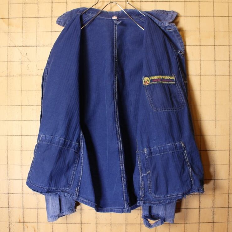 60s 70s ドイツ SCHNEIDERS WERKMANN ヘリンボーンツイル ワーク ジャケット カバーオール メンズM相当 ネイビー ブルー ユーロ ヨーロッパ古着です。