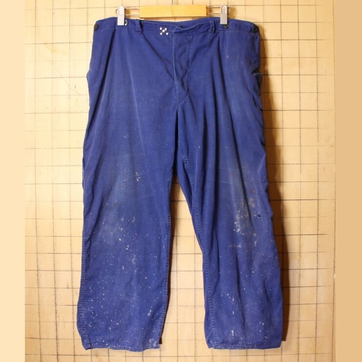60s 70s ドイツ フランス コットン ワーク ペインター パンツ W37相当 ネイビー ブルー EURO ユーロ ヨーロッパ古着 090821aw10