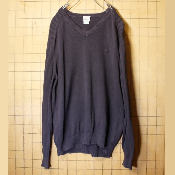 フレンチ ラコステ LACOSTE コットン ニット セーター Vネック グレー メンズL相当 ヨーロッパ古着 101321aw20