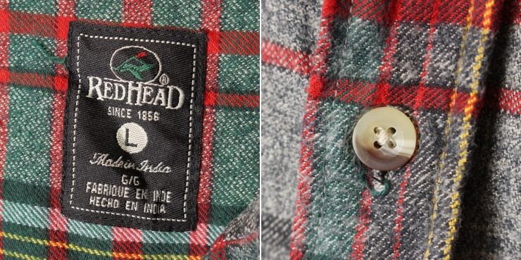 USA RED HEAD チェック ヘビーフランネル ボタンダウン シャツ グレー レッド メンズL 長袖 アメリカ古着です。