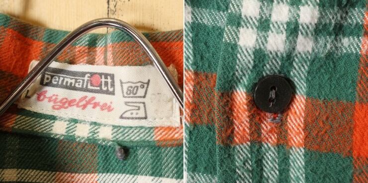 70s 80s EURO permaflott チェック フランネル コットン シャツ グリーン オレンジ メンズL 長袖 ヨーロッパ古着です。