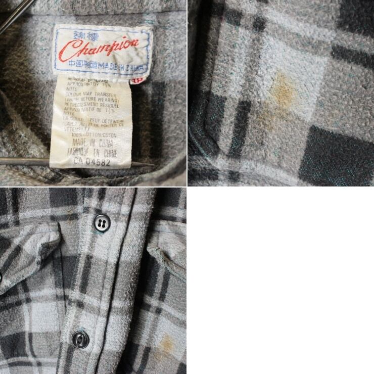 60s EURO ヘビーフランネル チェック シャツ メンズXL相当 グレー ブラック 長袖 アウトドア ヨーロッパ古着です。