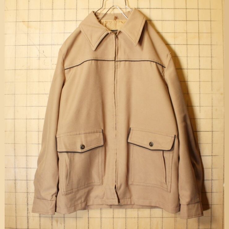 60s 70s USA JCPenney TOWNCRAFT ジップアップ ジャケット ハーフコート ベージュ メンズL アメリカ古着 101321aw94