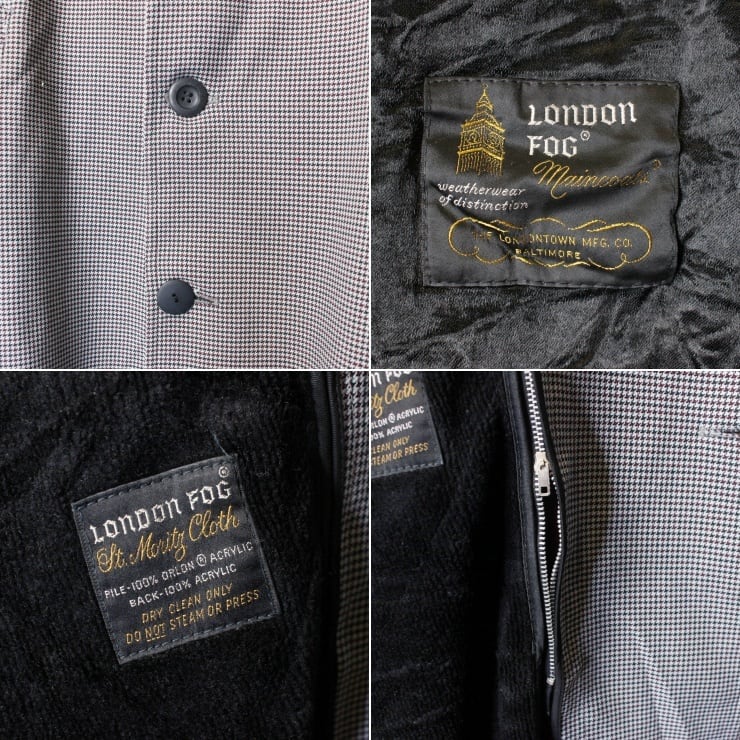 60s 70s USA製 LONDON FOG 千鳥格子 ステンカラー ロングコート グレー メンズXL相当 ボアライナー ビンテージ アメリカ古着 101321aw121