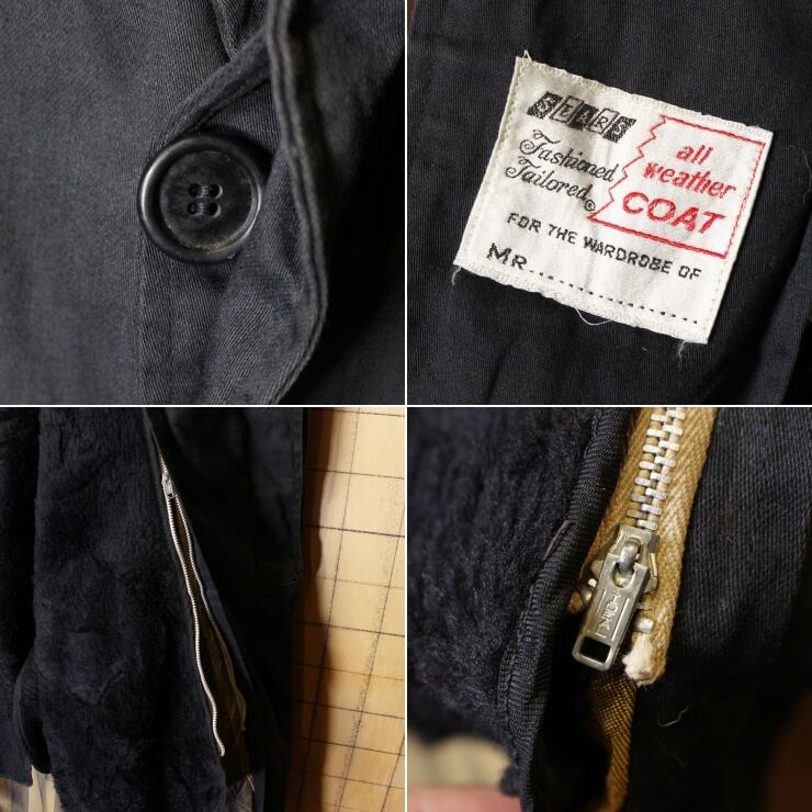 60s 70s USA製 Sears ステンカラー シングルコート ブラック メンズML相当 ボアライナー ビンテージ アメリカ古着です。