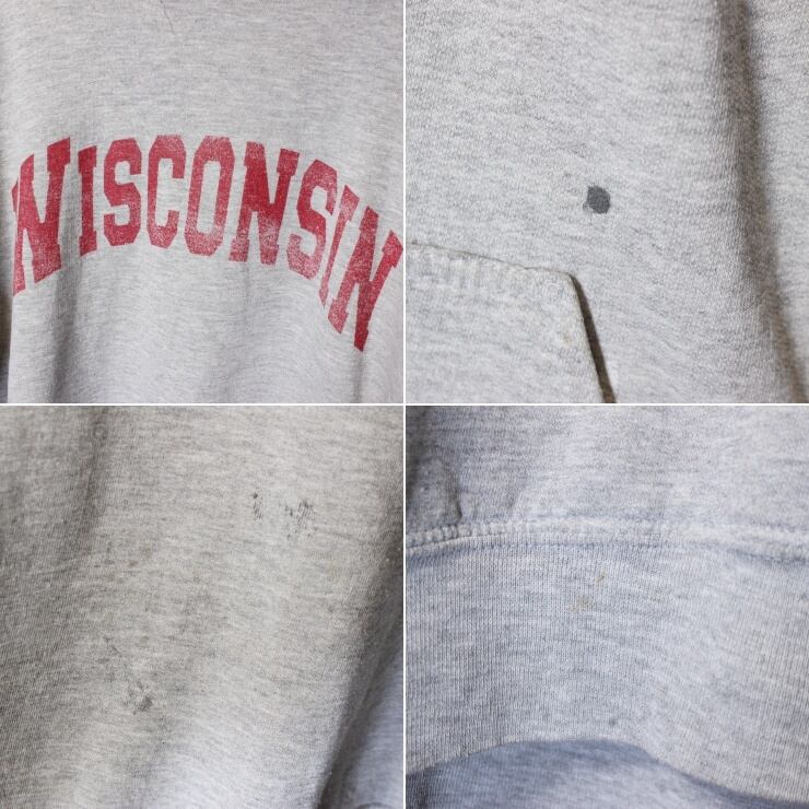 80s 90s GILDAN WISCONSIN カレッジプリント スウェット パーカー グレー メンズM ギルダン フーディ アメリカ古着 yan-15