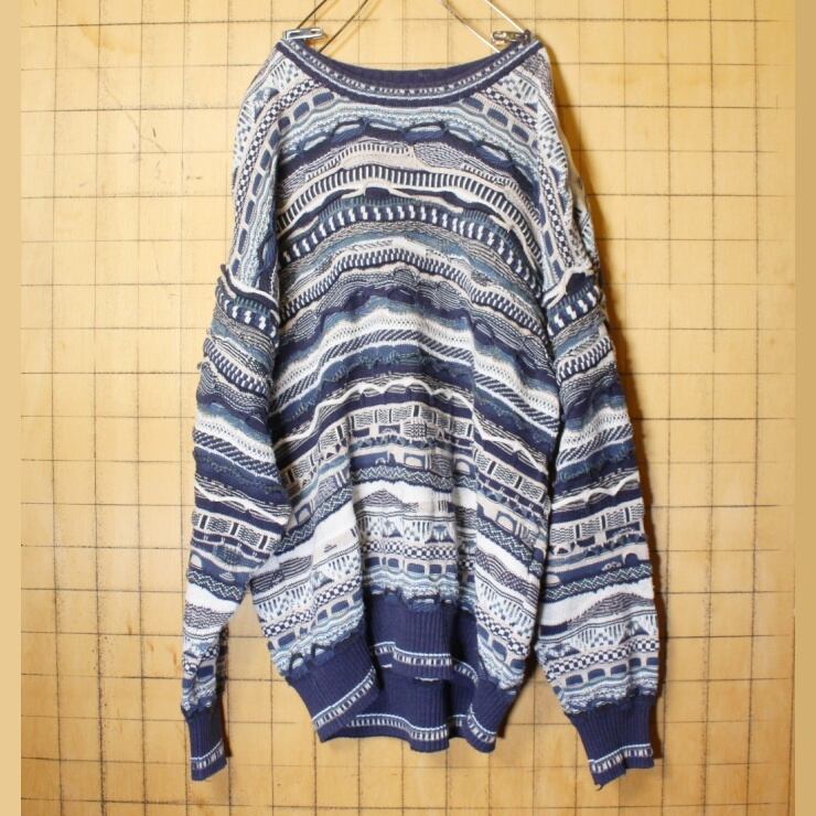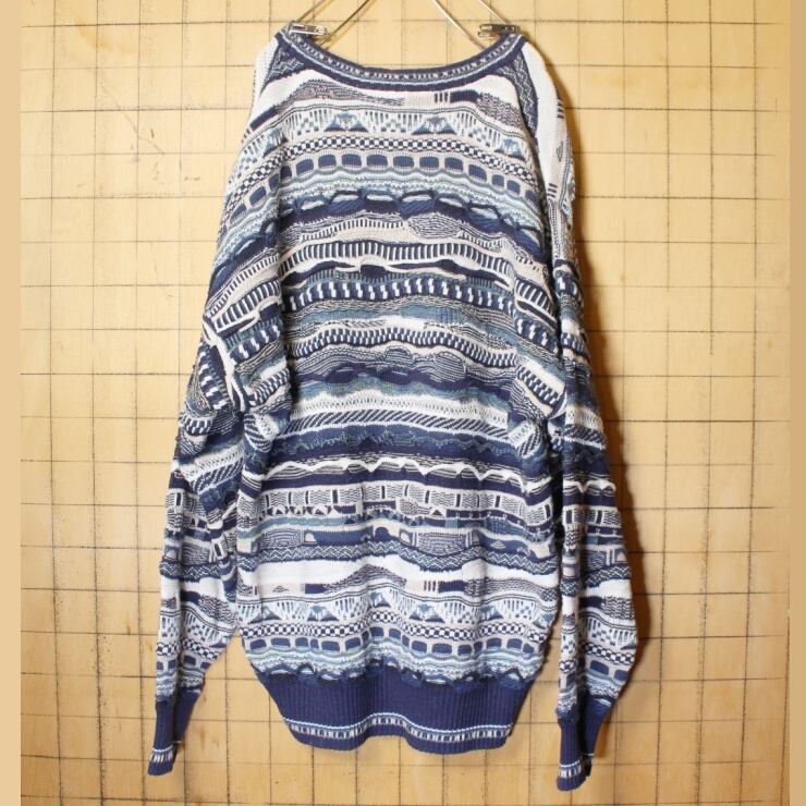 イタリア製 Giorgio di Firenze クージー風 総柄 コットン アクリル ニット セーター ネイビー ブルー メンズL ヨーロッパ古着 yan-16