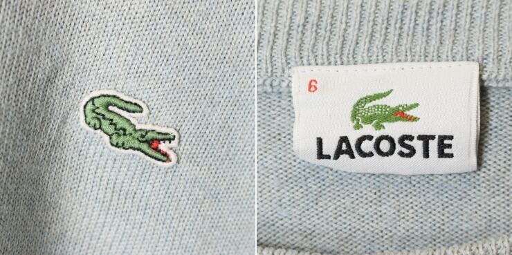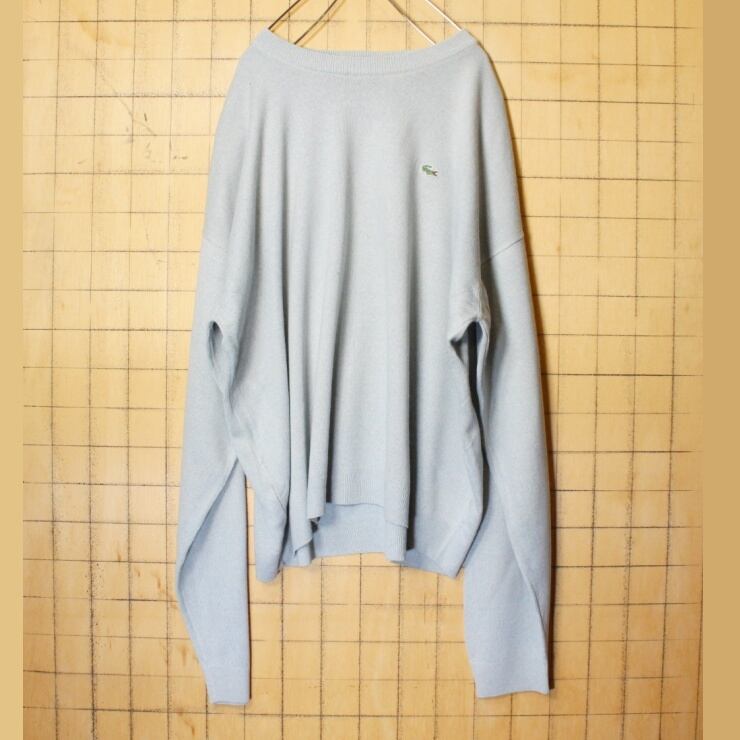 80s 90s フレンチ ラコステ LACOSTE ウール ニット セーター ライトブルー メンズXL相当 クルーネック ヨーロッパ古着です。
