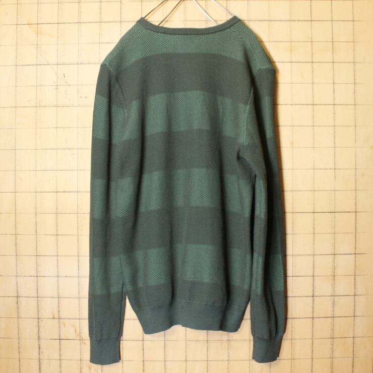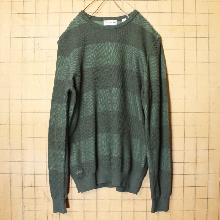フレンチ ラコステ LACOSTE コットン ニット ボーダー セーター グリーン メンズM クルーネック ヨーロッパ古着 121521aw22