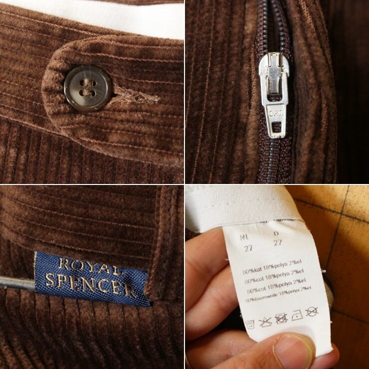 80s 90s EURO 太畝 コーデュロイ ワイド パンツ ブラウン W38相当 茶 ユーロ ヨーロッパ古着 ROYAL SPENCERです。
