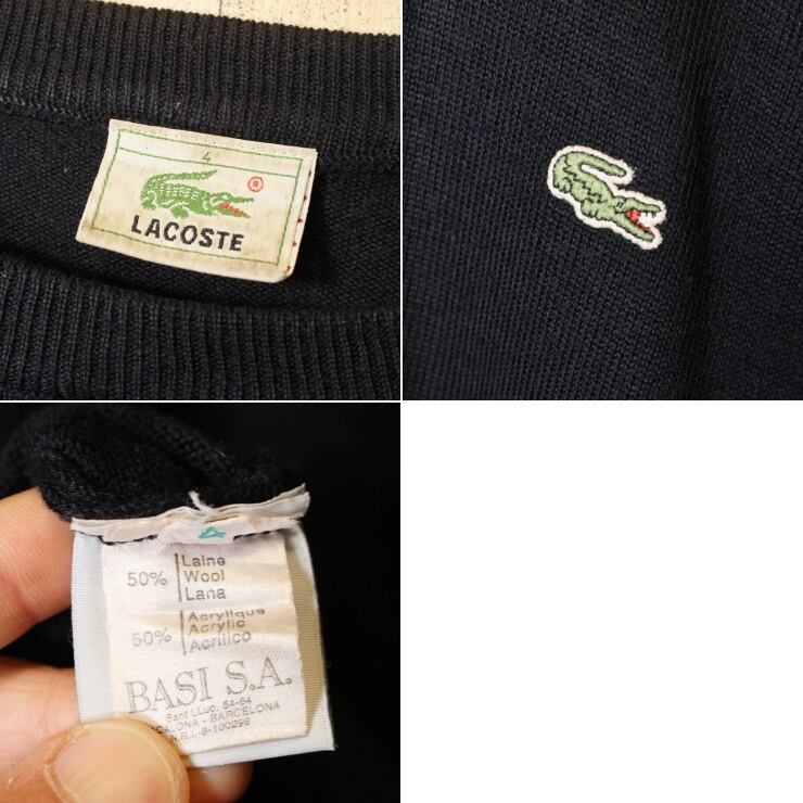 80s 90s フランス企画 フレンチ ラコステ LACOSTE ウール ニット セーター クルーネック ネイビー メンズML相当 ヨーロッパ古着です。