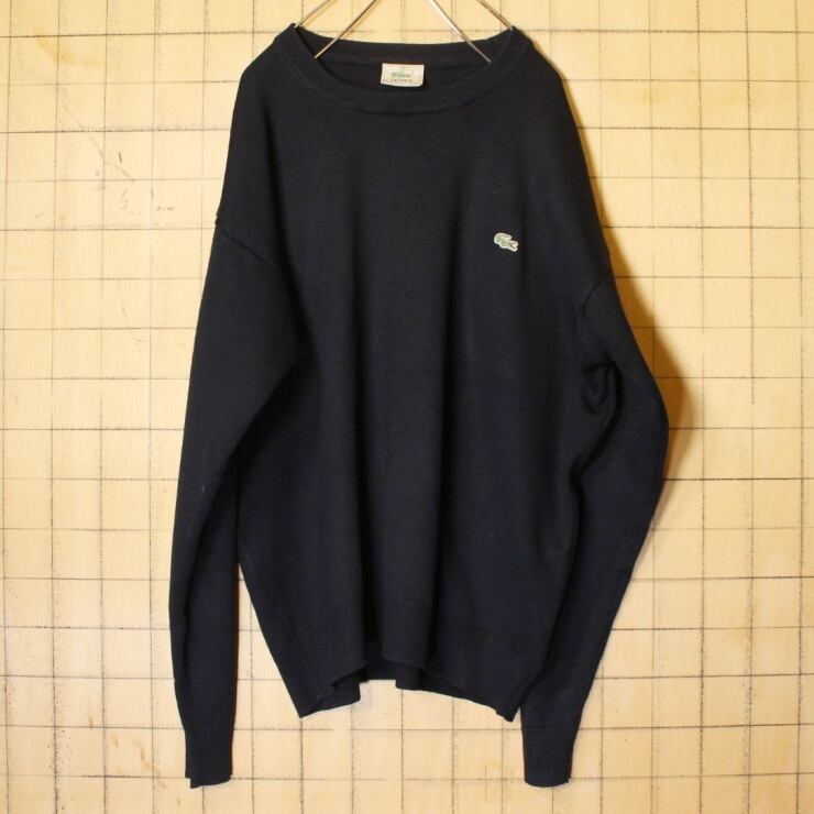 80s 90s フランス企画 フレンチ ラコステ LACOSTE ウール ニット セーター クルーネック ネイビー メンズML相当 ヨーロッパ古着 020222ss16