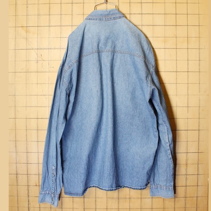 80s 90s EURO デニム ウエスタン シャツ ブルー 青 メンズML相当 長袖 ヨーロッパ古着 020222ss83