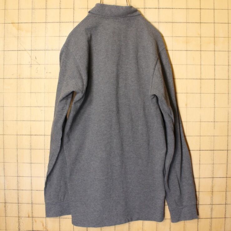 90s フランス企画 フレンチラコステ Lacoste 長袖 ポロシャツ 霜降りグレー 灰 メンズSM相当 ワンポイント ヨーロッパ古着 020222ss2