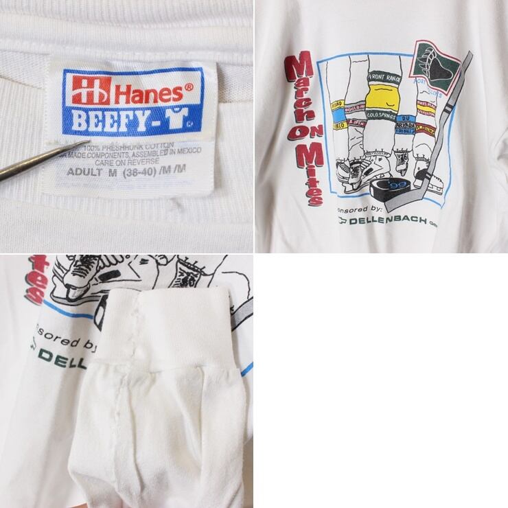 90s Hanes ヘインズ アイスホッケー プリント 長袖 Tシャツ ロンT ホワイト 白 メンズM シボレー アメリカ古着 020222ss61