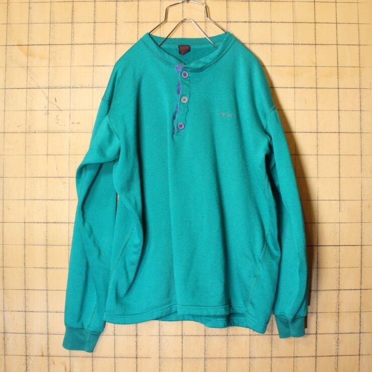 90s USA製 patagonia パタゴニア ヘンリーネック 無地 フリース シャツ スウェット グリーン メンズL アメリカ古着 pan-549