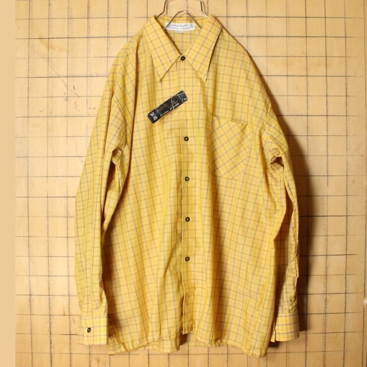 デッドストック 60s 70s EURO チェック ネル シャツ メンズXL相当 イエロー 長袖 ヨーロッパ古着 020222ss92