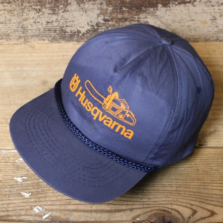 USA プリント キャップ 帽子 Husqvarna ネイビー 青 フリーサイズ アメリカ古着 020222ss182