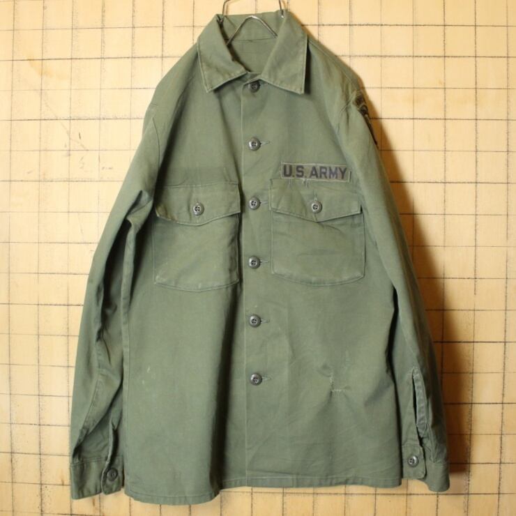 1970s U.S.ARMY OG-507 ユーティリティ シャツ メンズSM相当 ミリタリー AIRBORNE ワッペン アメリカ古着 033122ss1