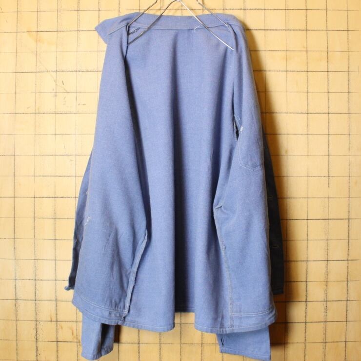 60s 70s ドイツ フランス ワーク ジャケット カバーオール メンズML相当 ネイビー ブルー ユーロ ヨーロッパ古着 033122ss38
