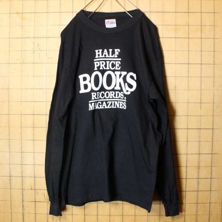 USA Hanes ヘインズ 両面プリント 長袖 Tシャツ ロンT ブラック 黒 メンズM HALF PRICE BOOKS RECORDS MAGAZINES アメリカ古着です。