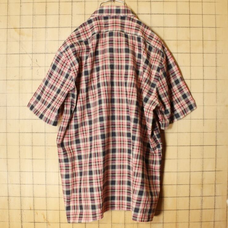 60s 70s EURO 半袖 ボックス チェック シャツ レッド ブラック メンズML相当 ヨーロッパ古着 020222ss102