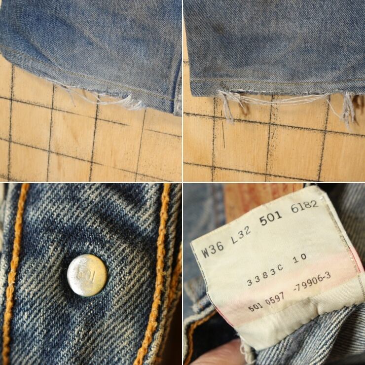 90s USA製 Levis 501 リーバイス ブルー ジーンズ デニム ダメージ パンツ W36 アメリカ古着です。