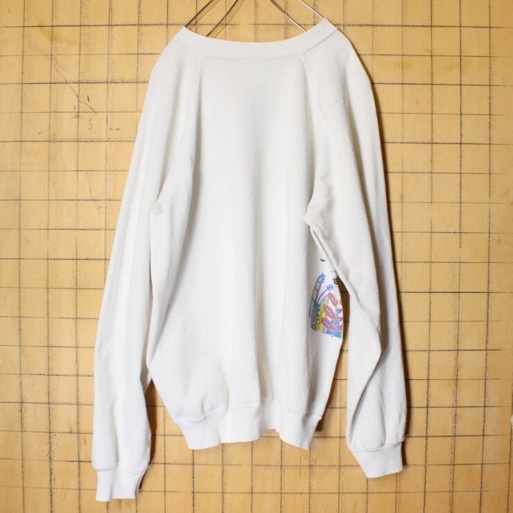 80s 90s USA製 Hanes ヘインズ アニマルプリント スウェット ホワイト 白 メンズXL SAN DIEGO ZOO 動物園 アメリカ古着 pan-563