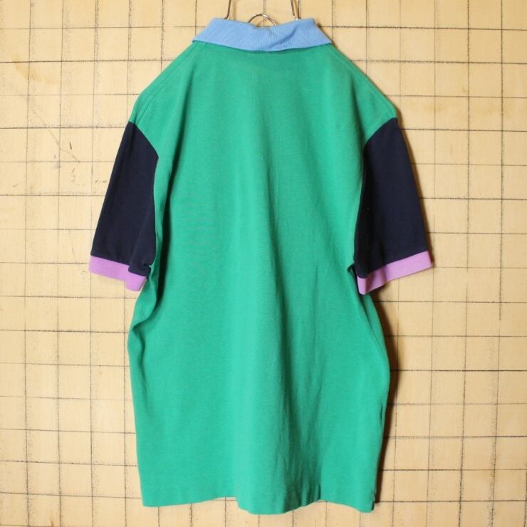 フランス企画 フレンチラコステ Lacoste 半袖 ポロシャツ クレイジーパターン グリーン ブラック ピンク メンズM相当 ワンポイント ヨーロッパ古着 033122ss61