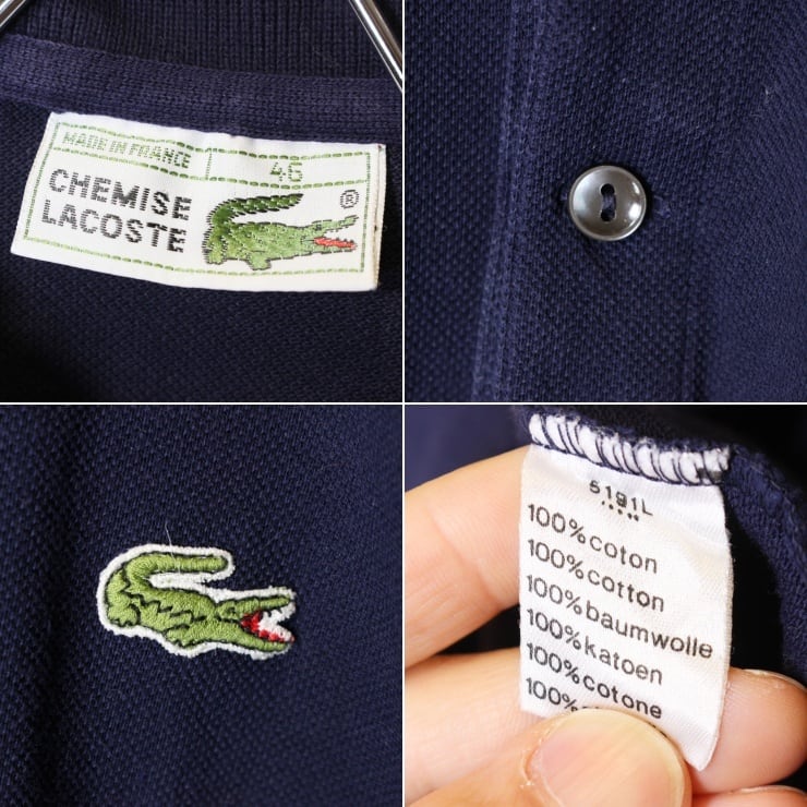 70s 80s フランス製 フレンチラコステ Lacoste フレンチスリーブ ポロシャツ ネイビー ブルー レディースXL相当 ワンポイント ヨーロッパ古着 033122ss72です。