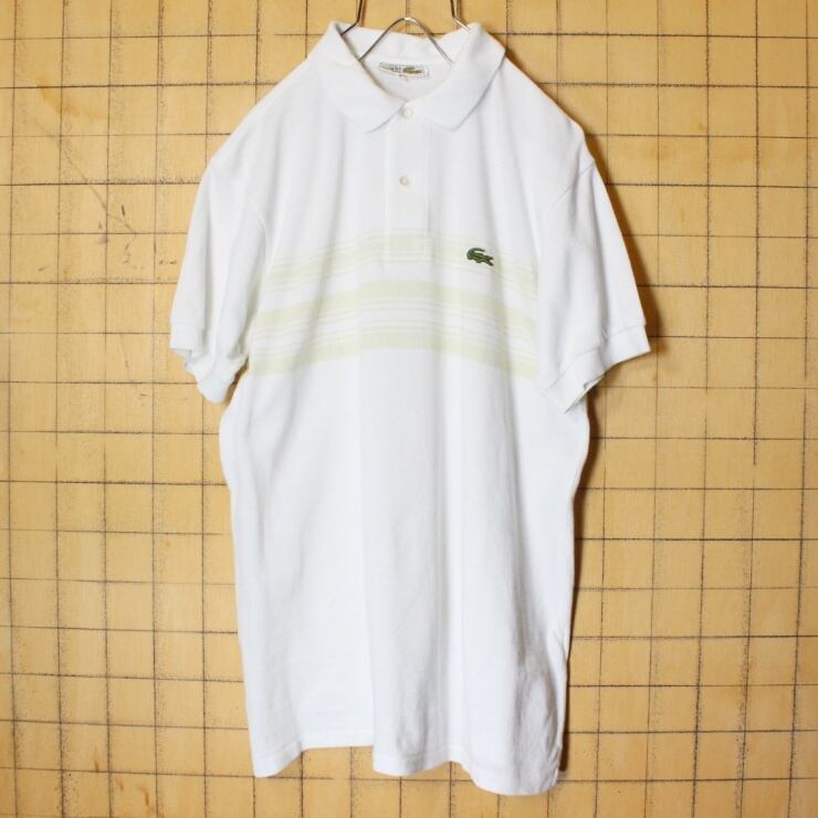 70s 80s フランス製 フレンチラコステ Lacoste 半袖 ボーダー ポロシャツ ホワイト メンズSM相当 ワンポイント ヨーロッパ古着 033122ss79