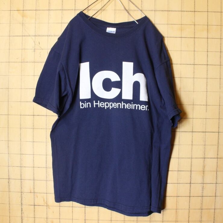 90s USA GILDAN Ich 両面プリント Tシャツ ネイビー 半袖 メンズL アメリカ古着 033122ss110
