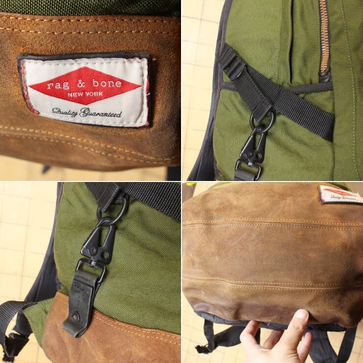 USA rag&bone グリーン カーキ リュックサック ボトムレザー アウトドア バックパック アメリカ古着 051122ss148