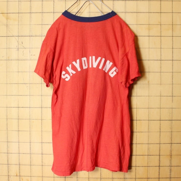 60s 70s CANADA製 ALBERTA SUMMER GAMES 両面プリント Tシャツ レッド 半袖 レディースL メンズS相当 アメリカ古着 051122ss55