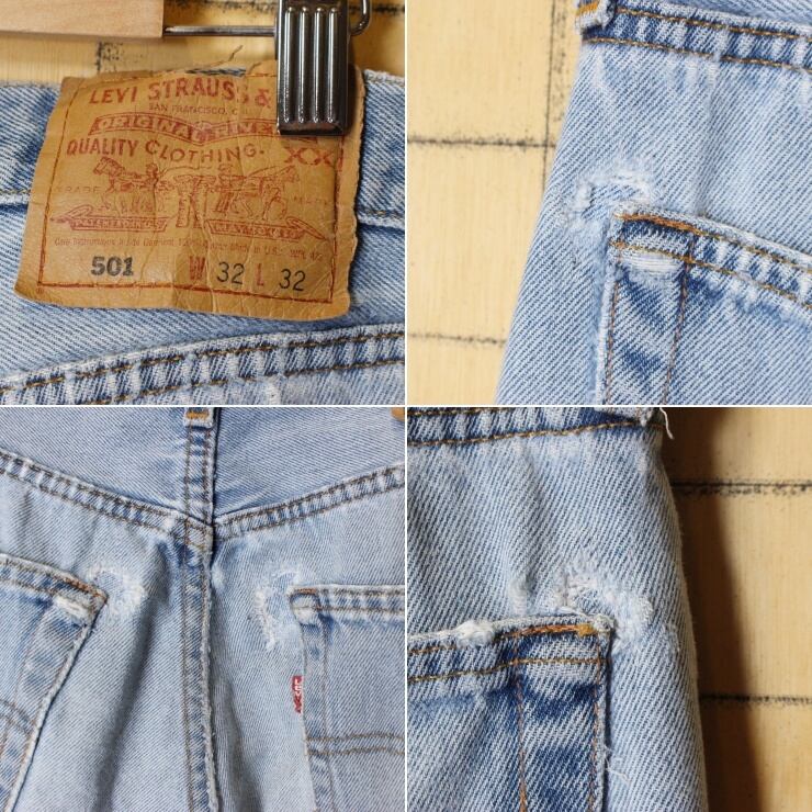 90s USA製 Levis 501 リーバイス リメイク ブルー ジーンズ デニム ダメージ パンツ W32 アメリカ古着 pan-578
