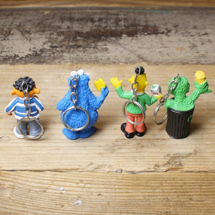 80s セサミストリート キーホルダー フィギュア 4体セット クッキーモンスター オスカー バート アーニー 22ty68