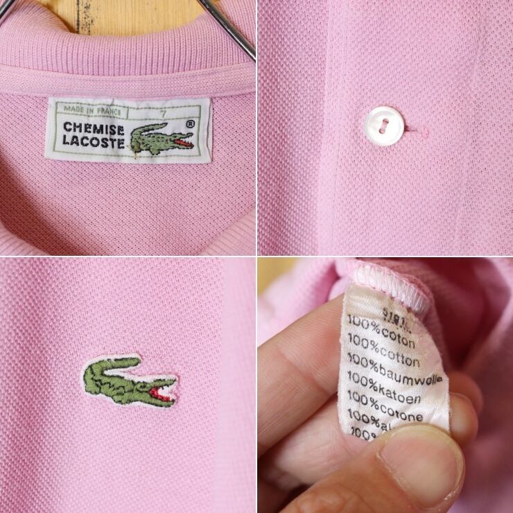 70s 80s フランス製 フレンチラコステ Lacoste 半袖 ポロシャツ ピンク メンズL相当 ワンポイント ヨーロッパ古着です。