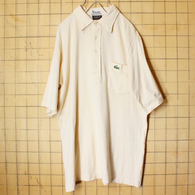 70s IZOD LACOSTE ラコステ 半袖 ポロシャツ ベージュ メンズL ワンポイント アメリカ古着 071322ss50