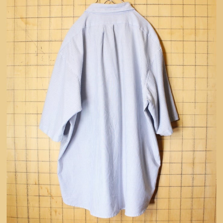ビッグサイズ 70s 80s USA製 Edwards ワッペン ストライプ ワーク ボタンダウン シャツ ライトブルー メンズXL相当 半袖 アメリカ古着 071322ss99です。
