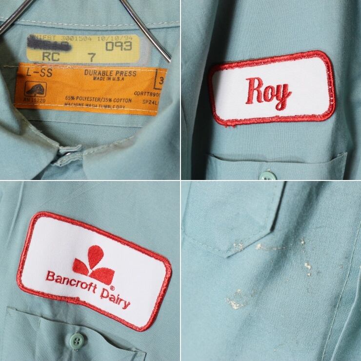 70s 80s USA製 RED KAP レッドキャップ ワッペン ワーク シャツ ライトグリーン メンズL 半袖 アメリカ古着 071322ss109です。
