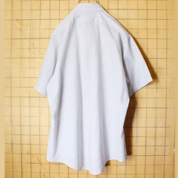70s 80s USA製 CiNTAS ワッペン ストライプ ワーク シャツ グレー メンズL 半袖 アメリカ古着 071322ss121