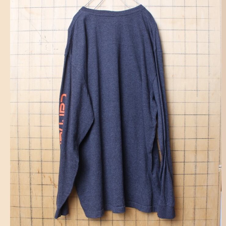 ビッグサイズ USA carhartt カーハート 袖プリント 長袖 Tシャツ ロンT ダークグレー メンズXL アメリカ古着 071322ss27