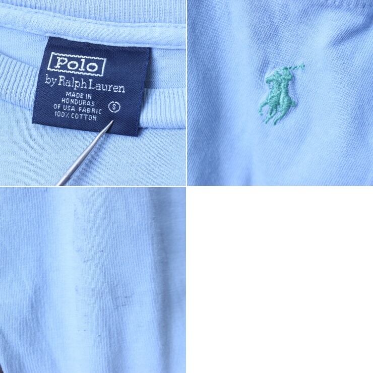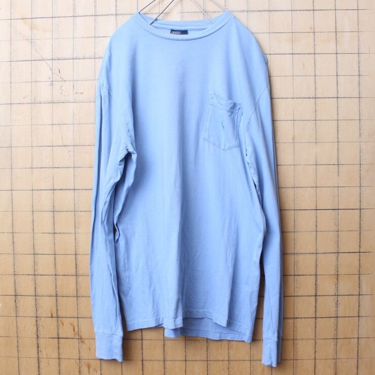 USA Polo RALPH LAUREN ポロ ラルフローレン 1ポケット 長袖 Tシャツ ロンT ライトブルー メンズS アメリカ古着 071322ss36