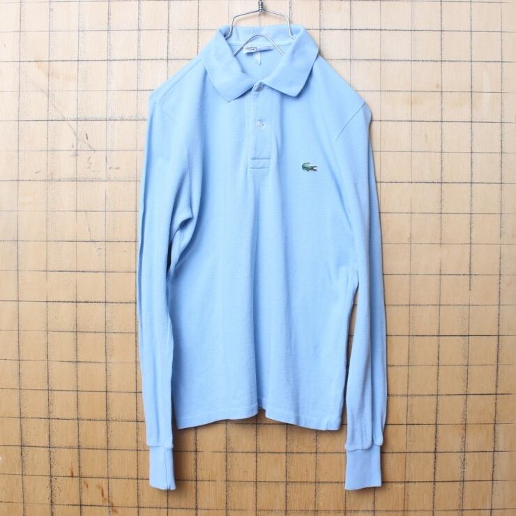 70s フランス製 フレンチラコステ Lacoste 長袖 ポロシャツ ライトブルー メンズXS相当 ワンポイント ヨーロッパ古着です。
